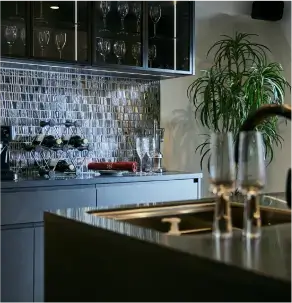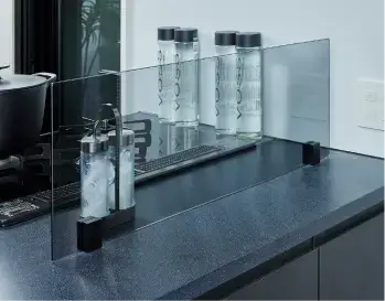 油はねや水はねを防ぐカウンタークリーン。デザインと実用性を兼ね備え、キッチン空間を演出。