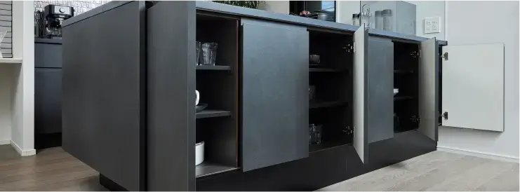 収納は勢いよく閉めても自動的にゆっくりと閉まるソフトクローズ仕様。大きな音もせず快適です。