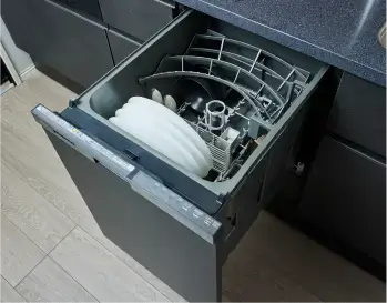 汚れを落としやすくするバイタル除菌洗浄機能付きの食器洗い乾燥機。使いやすい引出タイプです。